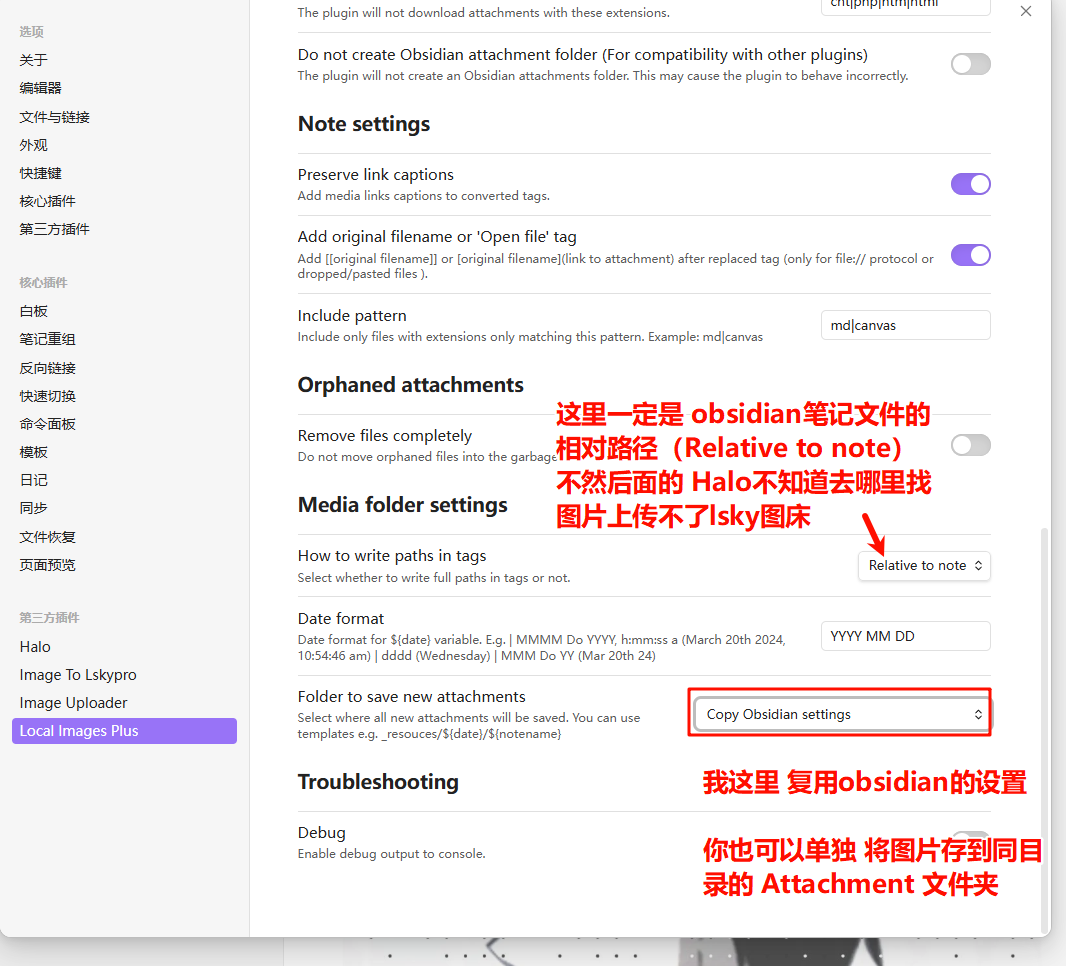 - How to write paths: Relative to note (适配 Halo)。