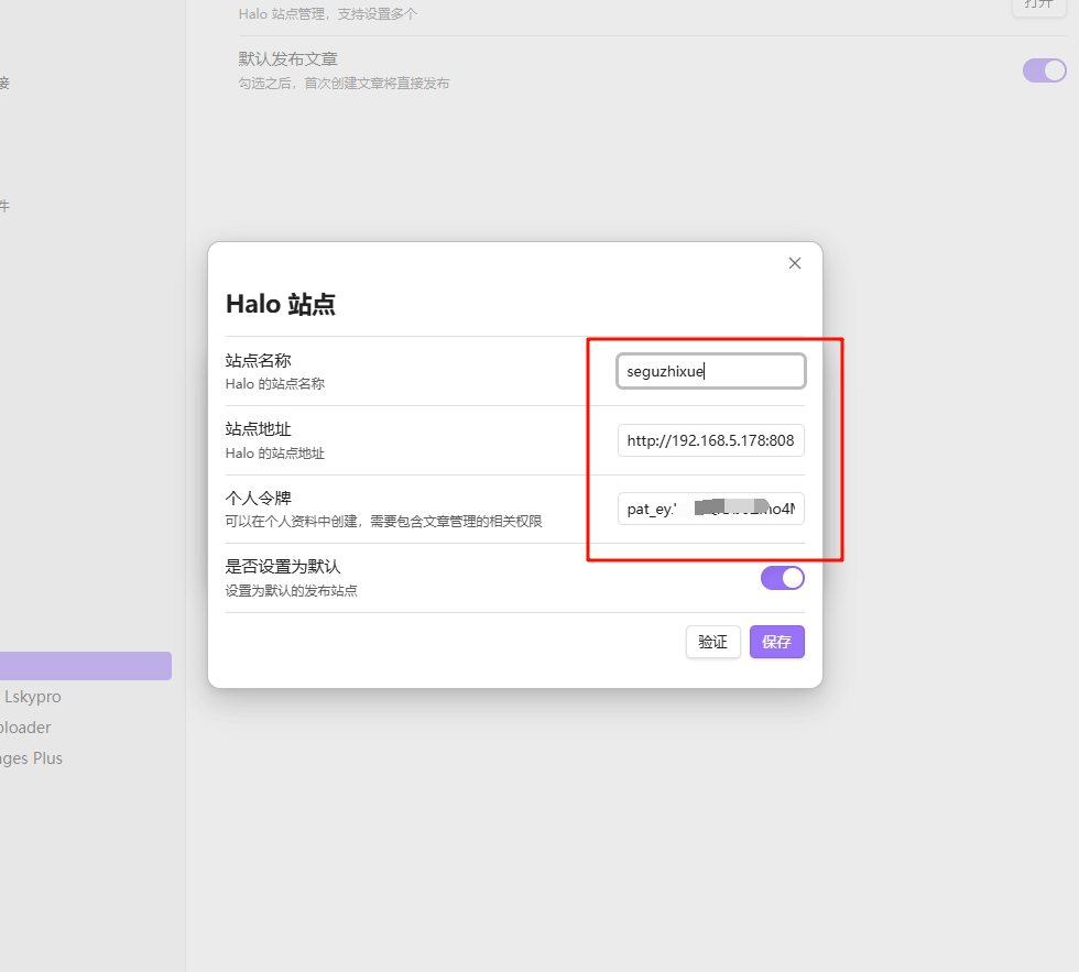 - Token :Halo 后台生成的“个人令牌”。