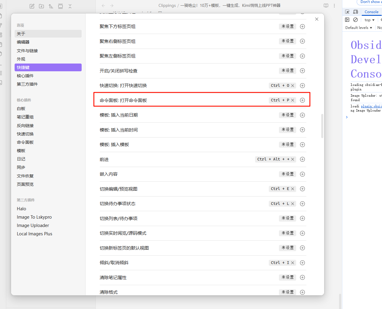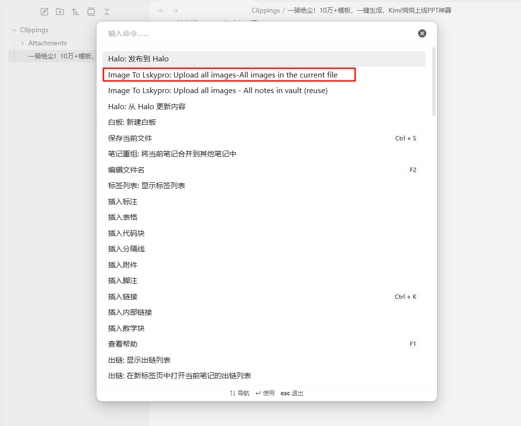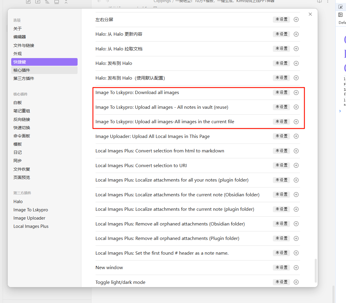 - 或者Ctrl+P打开命令面板,或者自定义上传这篇笔记所有图片/文件夹内所有图片命令的 ==快捷键==