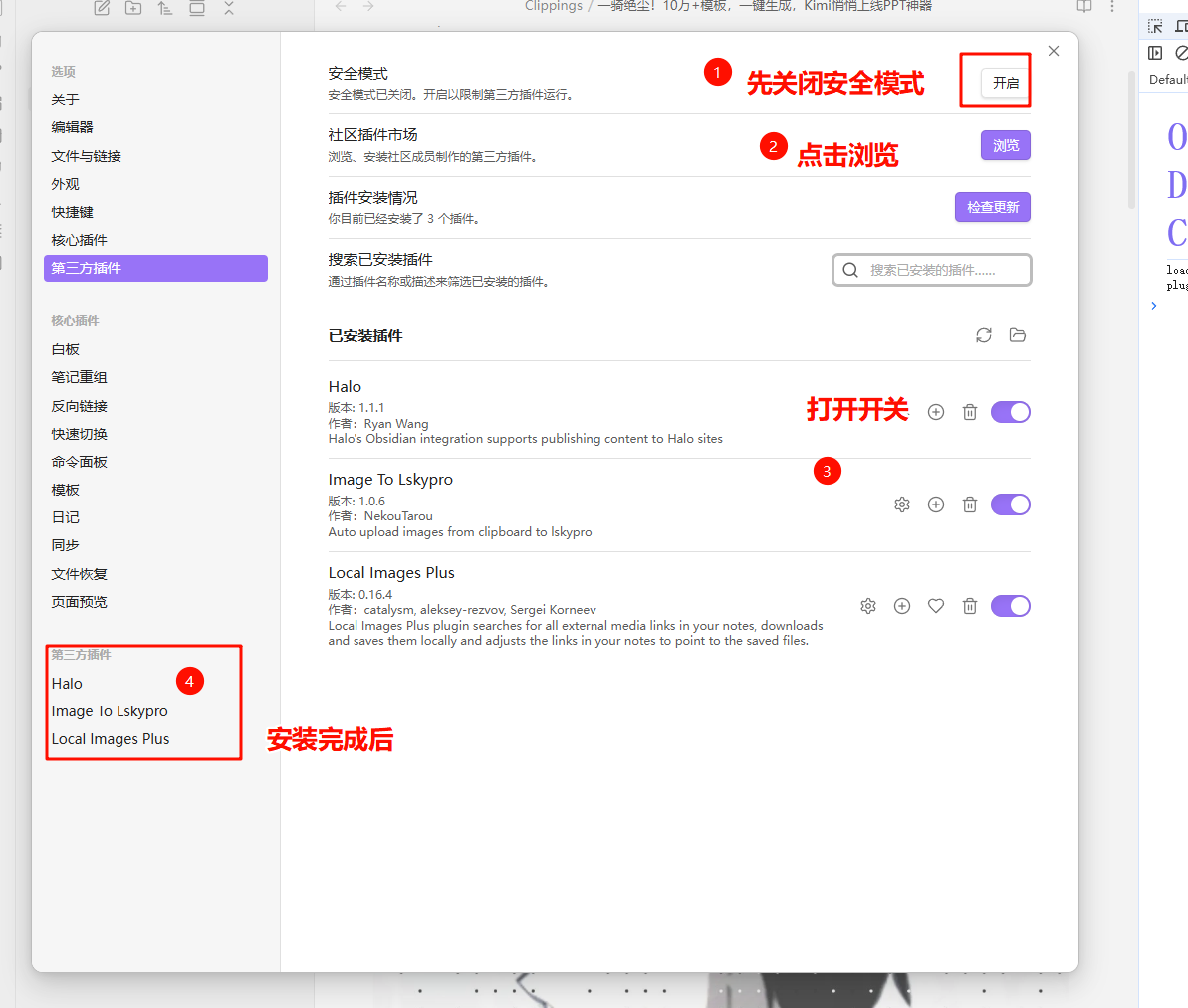 2. 安装Obsidian三个插件