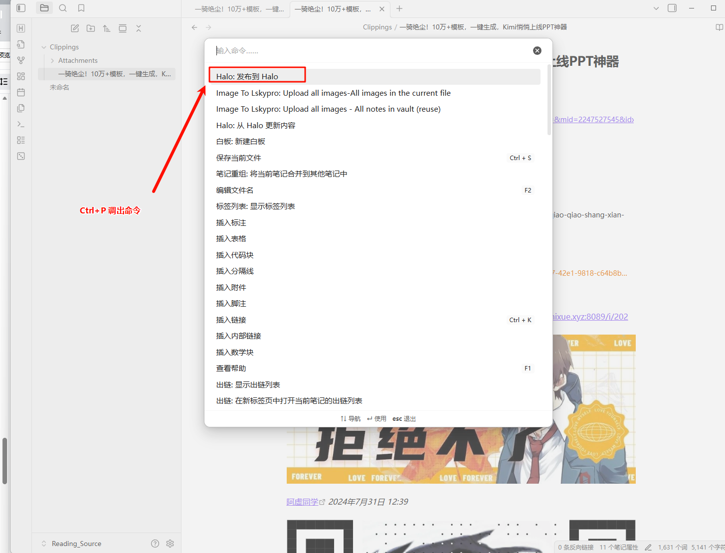 - 在笔记中调用命令 Halo: Publish 。