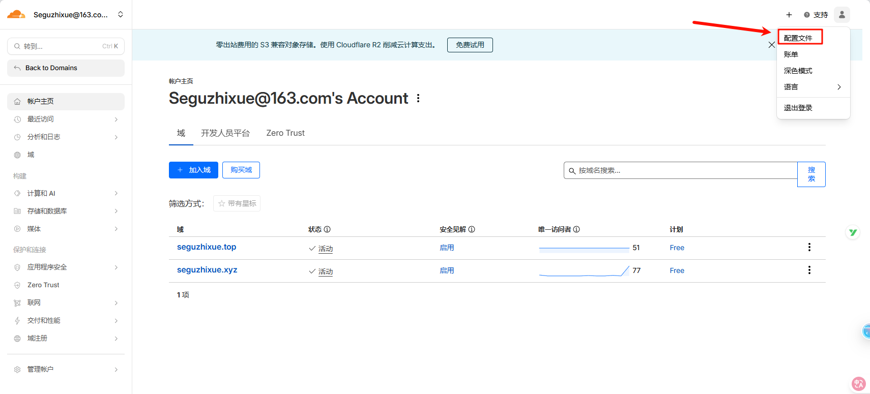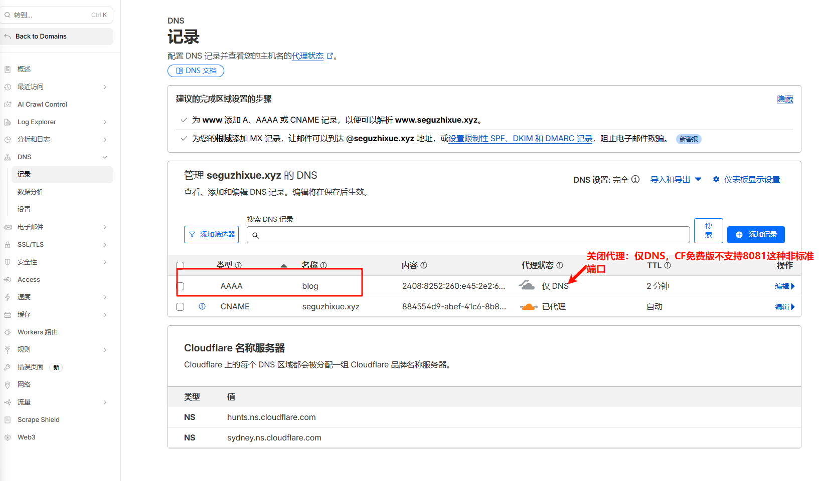 由于你之前的对话中提到已经把 seguzhixue.top 的 DNS 托管到了 Cloudflare (为了用 Tunnel),我将重点介绍 Cloudflare 的配置方法,因为cf最良心,最稳定,全球最大(至于阿里云、腾讯云类似设置)