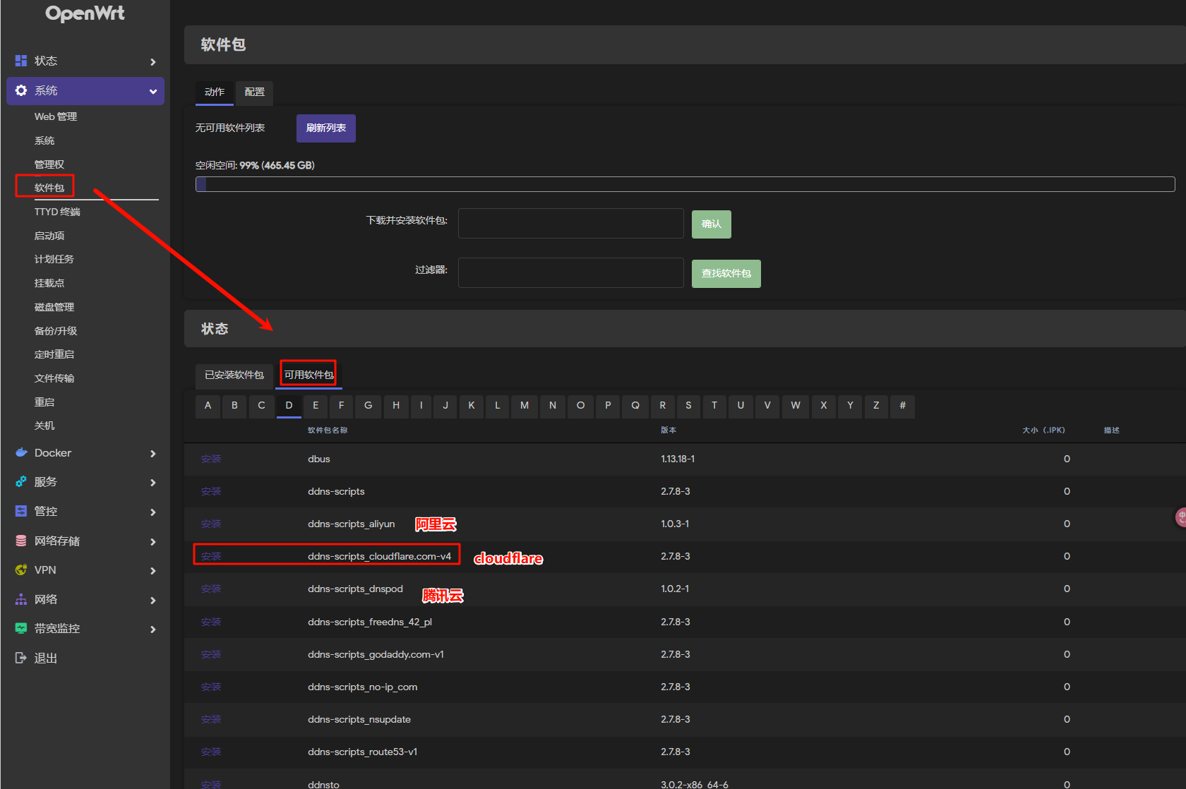 - ddns-scripts-cloudflare (Cloudflare 专用脚本, 强烈建议安装)