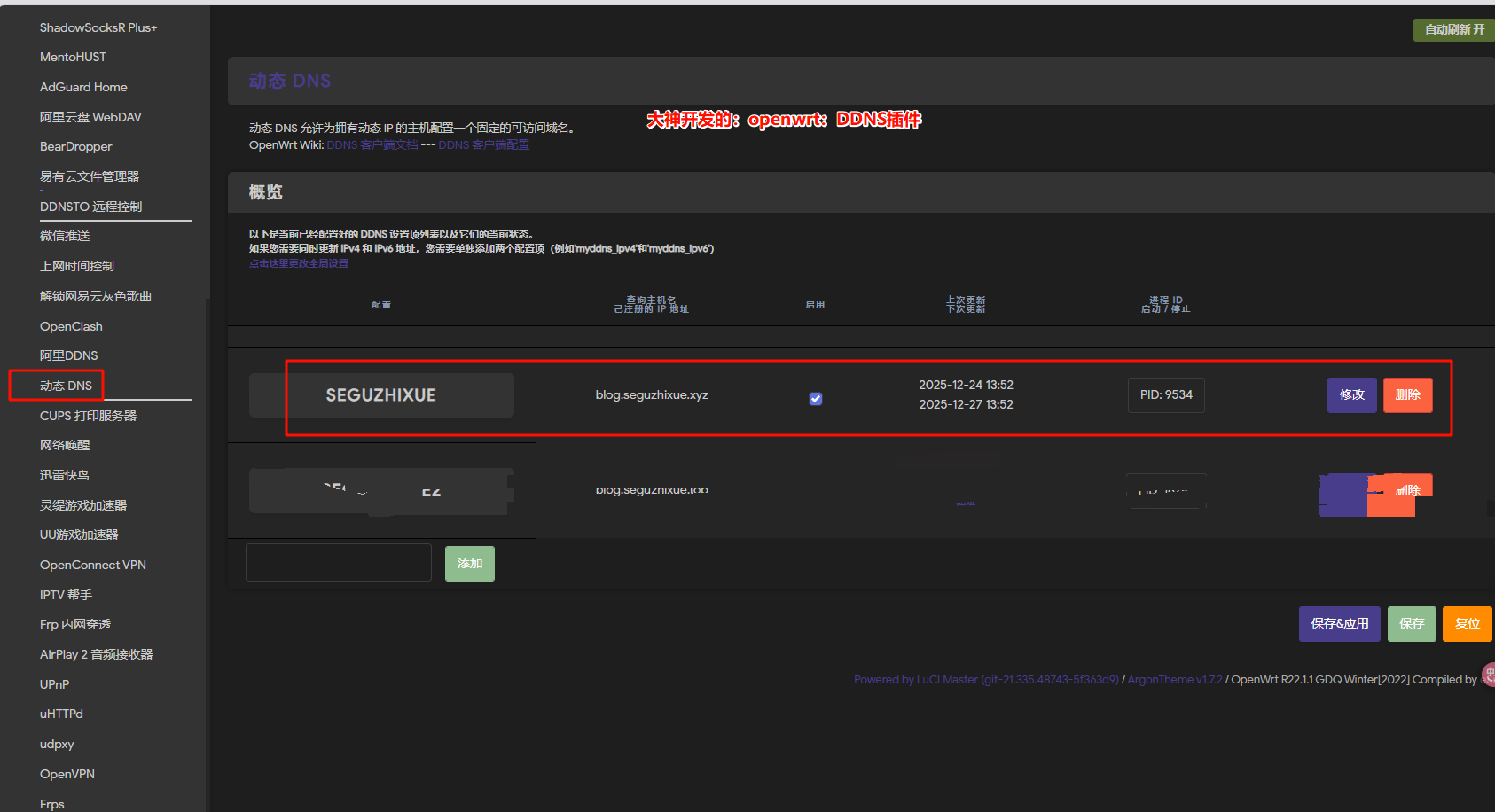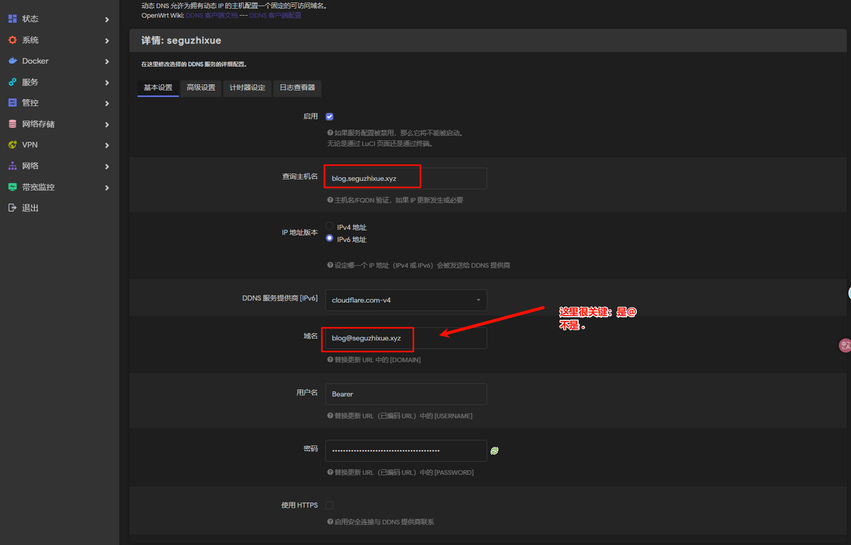 配置好 DDNS 后, blog.seguzhixue.top 就会指向你路由器的 IPv6 地址了。但是,要访问内网 NAS (192.168.5.178),你依然需要配合我上一条回复中提到的 Socat 转发 。