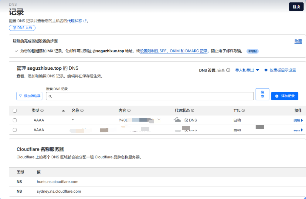 第一步:确认 DNS 解析(Cloudflare)