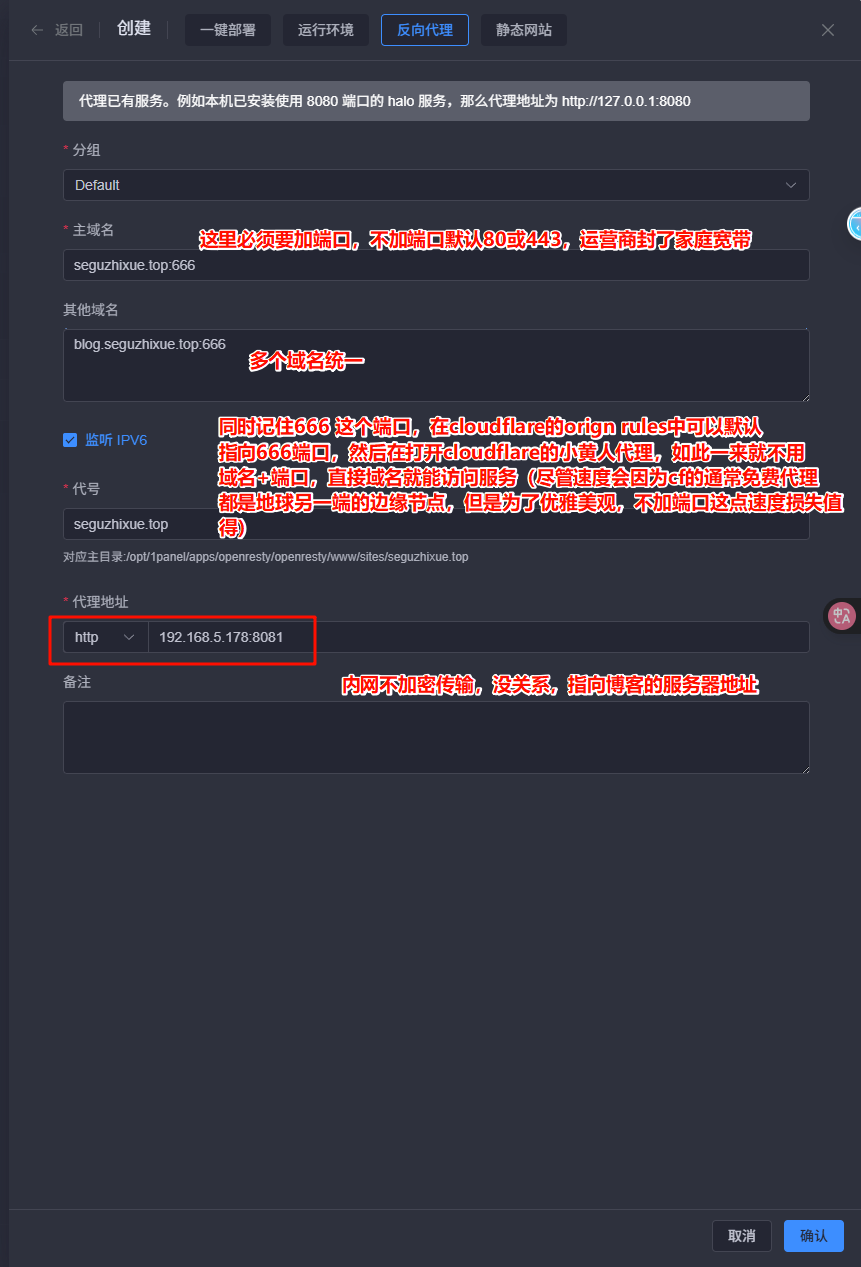 - 主域名 :填 seguzhixue.top:666,可选填写多个域名 blog.seguzhixue.top:666