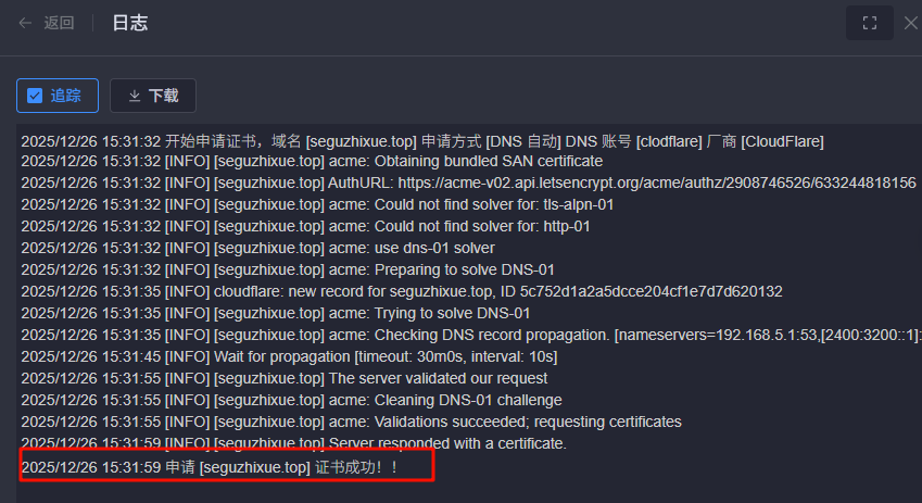 要在 1Panel 里实现 HTTPS,最好的办法是利用 Cloudflare 的 API 自动申请和续期证书。
