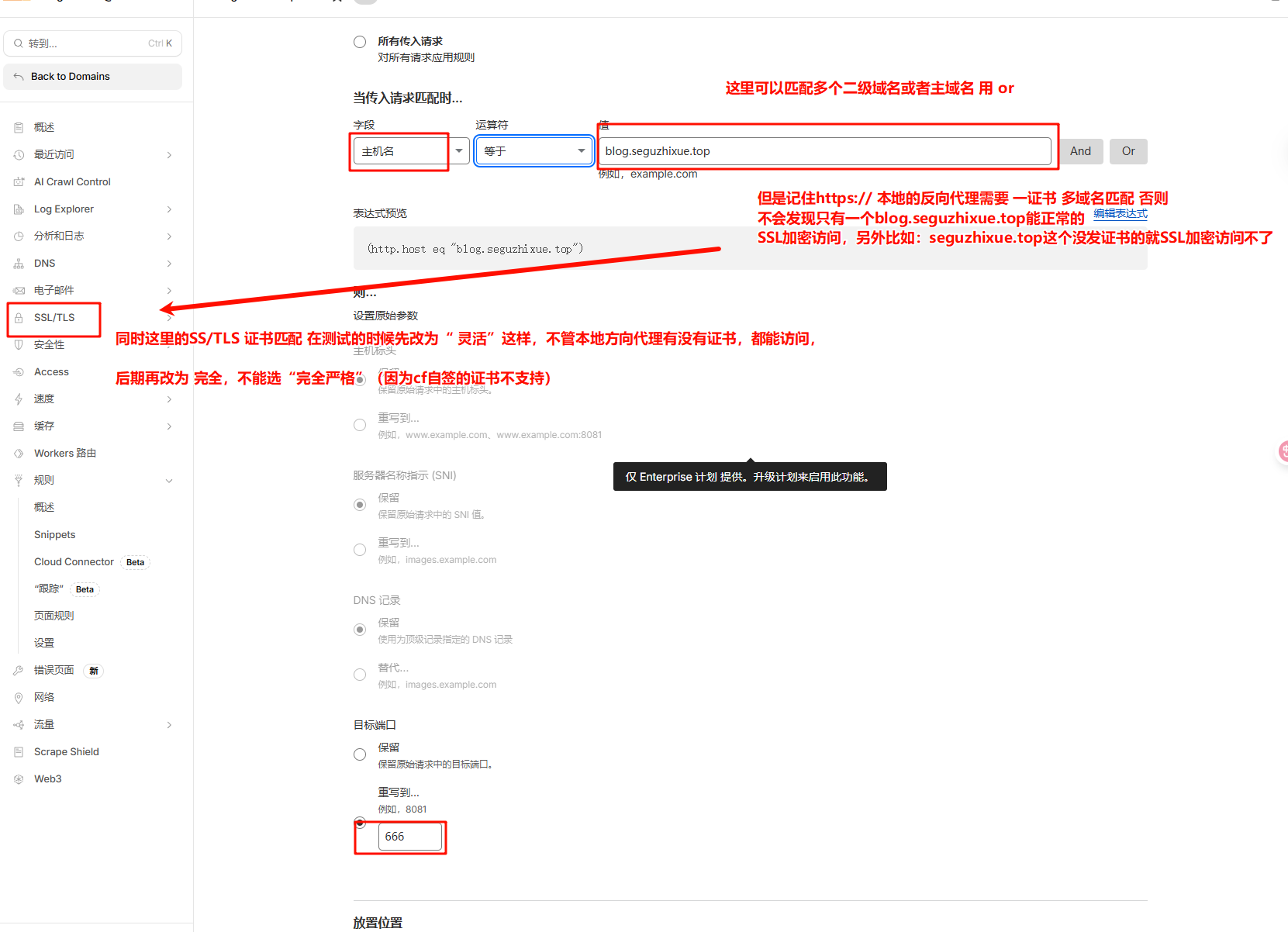- 匹配规则: Hostname 等于 blog.seguzhixue.top