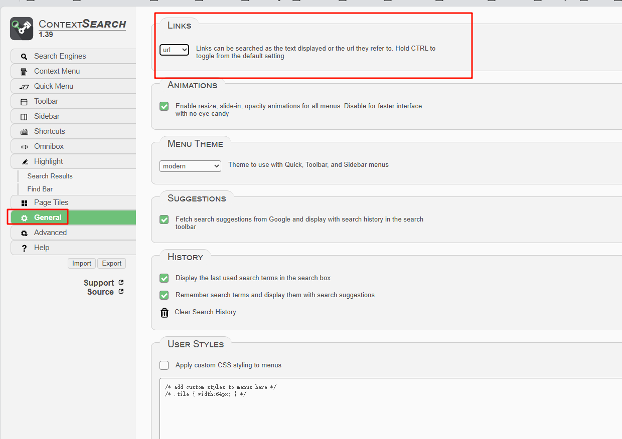 重新打开浏览器,进入 ContextSearch 的设置页面。