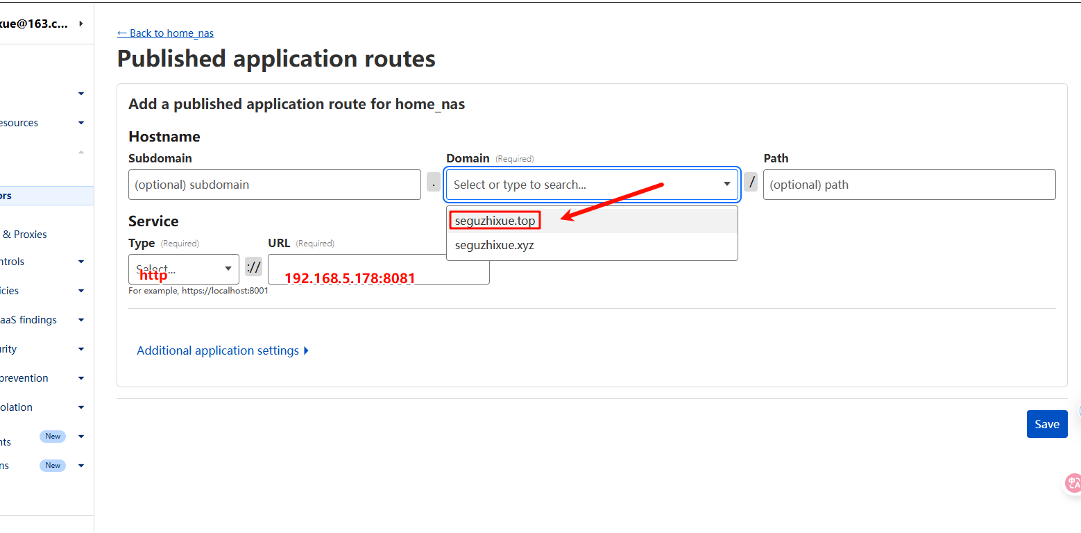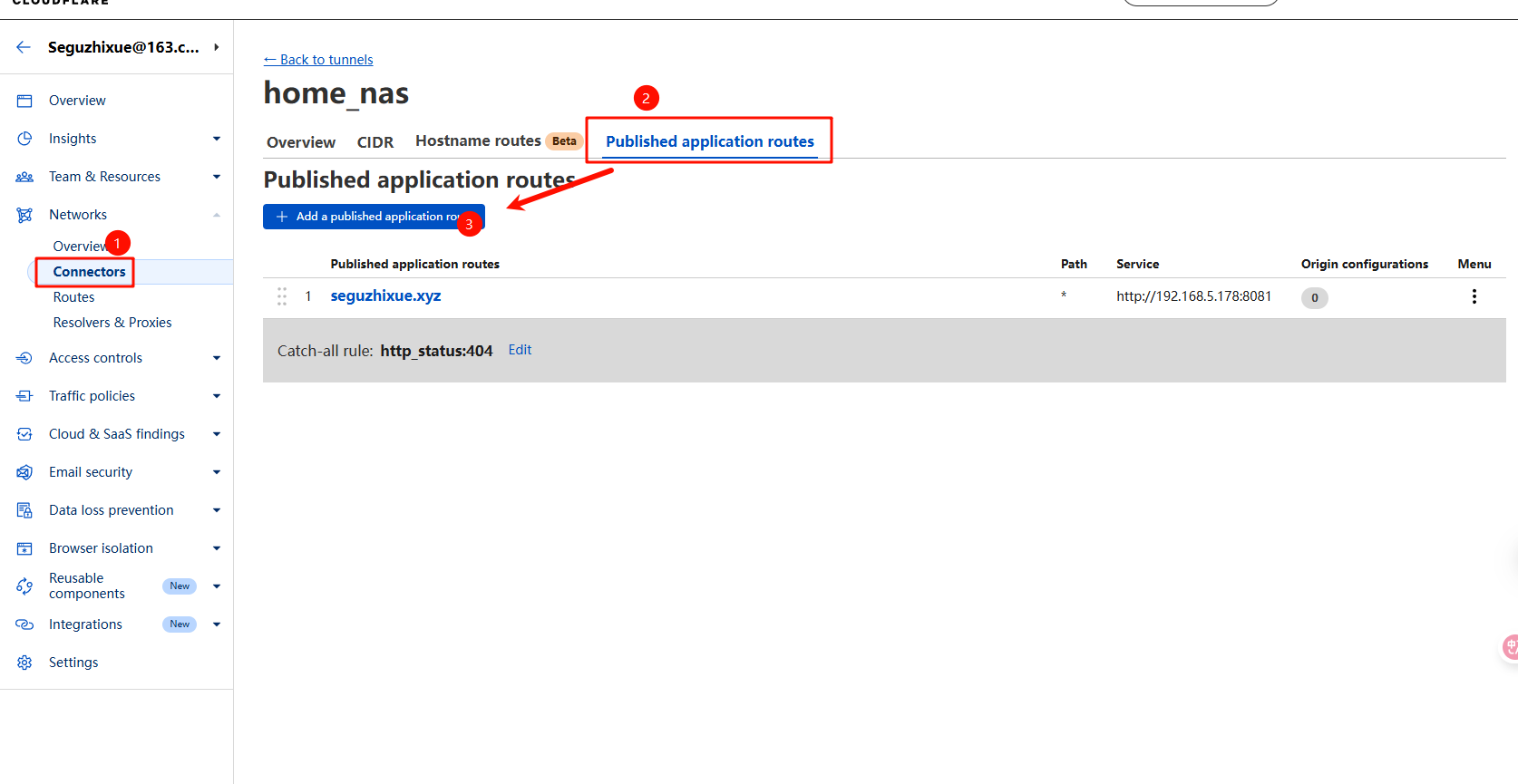 - 在 Cloudflare Tunnel 页面点击如图:建立应用路由