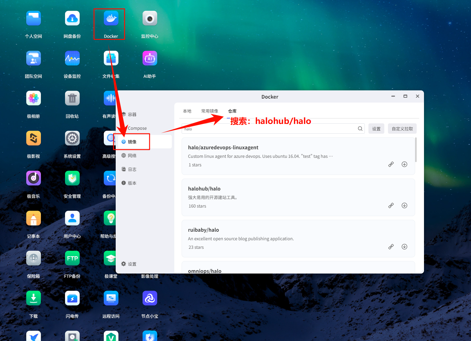 1. 打开极空间 Docker 管理器 -> 镜像仓库 。