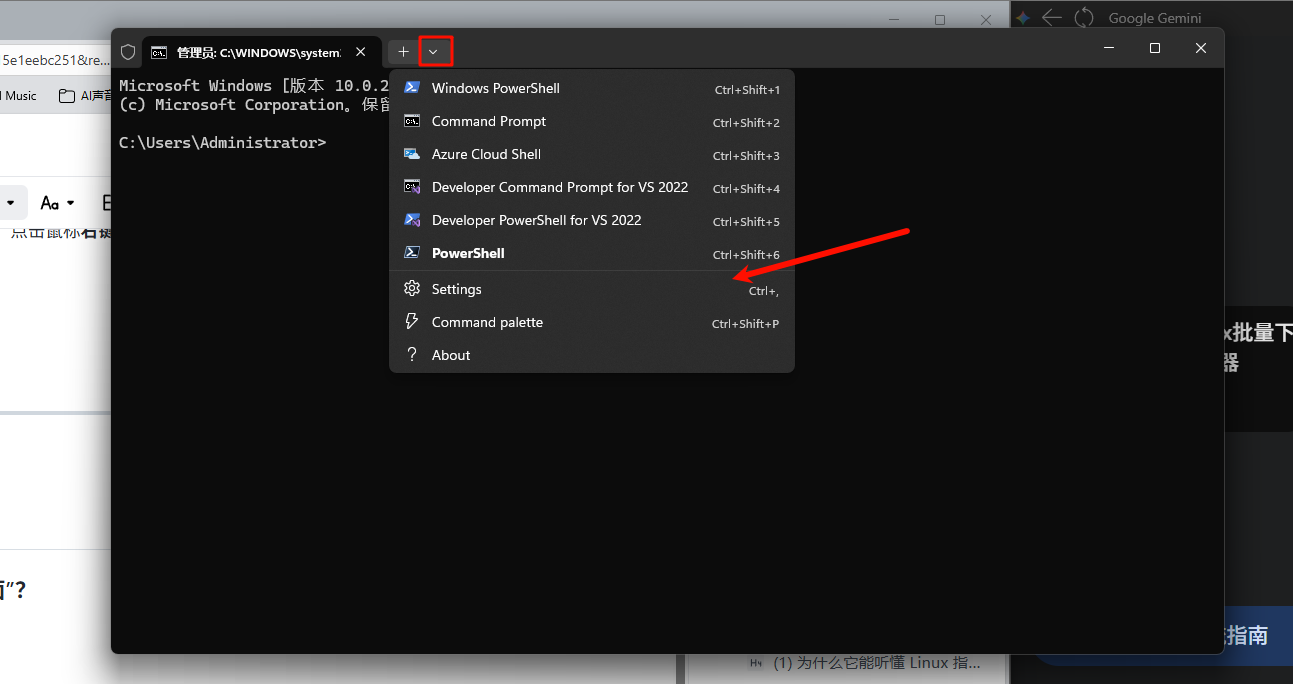 点击下拉菜单,选择 "PowerShell" (注意选黑色图标那个,不要选 Windows PowerShell)。