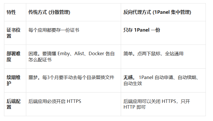 - 所有的加密、解密工作,全部由 1Panel 这个“前台”在门口一次性处理完。
