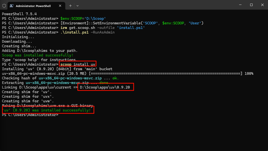 现在你的 D 盘里已经住进了一个全能管家 Scoop。接下来,我们要让管家帮你把最核心的武器——Python 开发环境和代码编辑器 (VS Code) 装好。