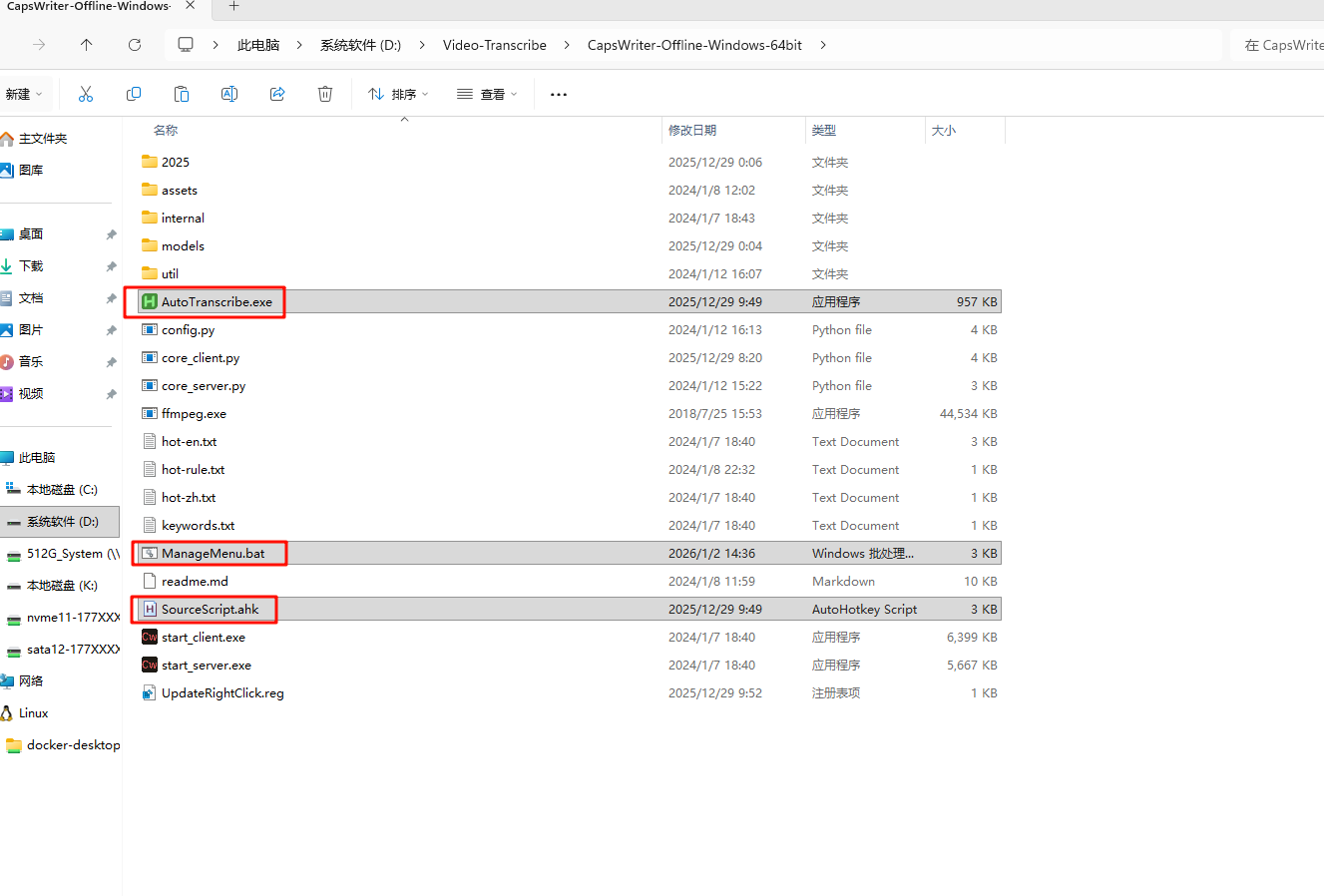 D:\Video-Transcribe\CapsWriter-Offline-Windows-64bit\start_server.exe作用:确保能正确唤醒 CapsWriter 的服务端。