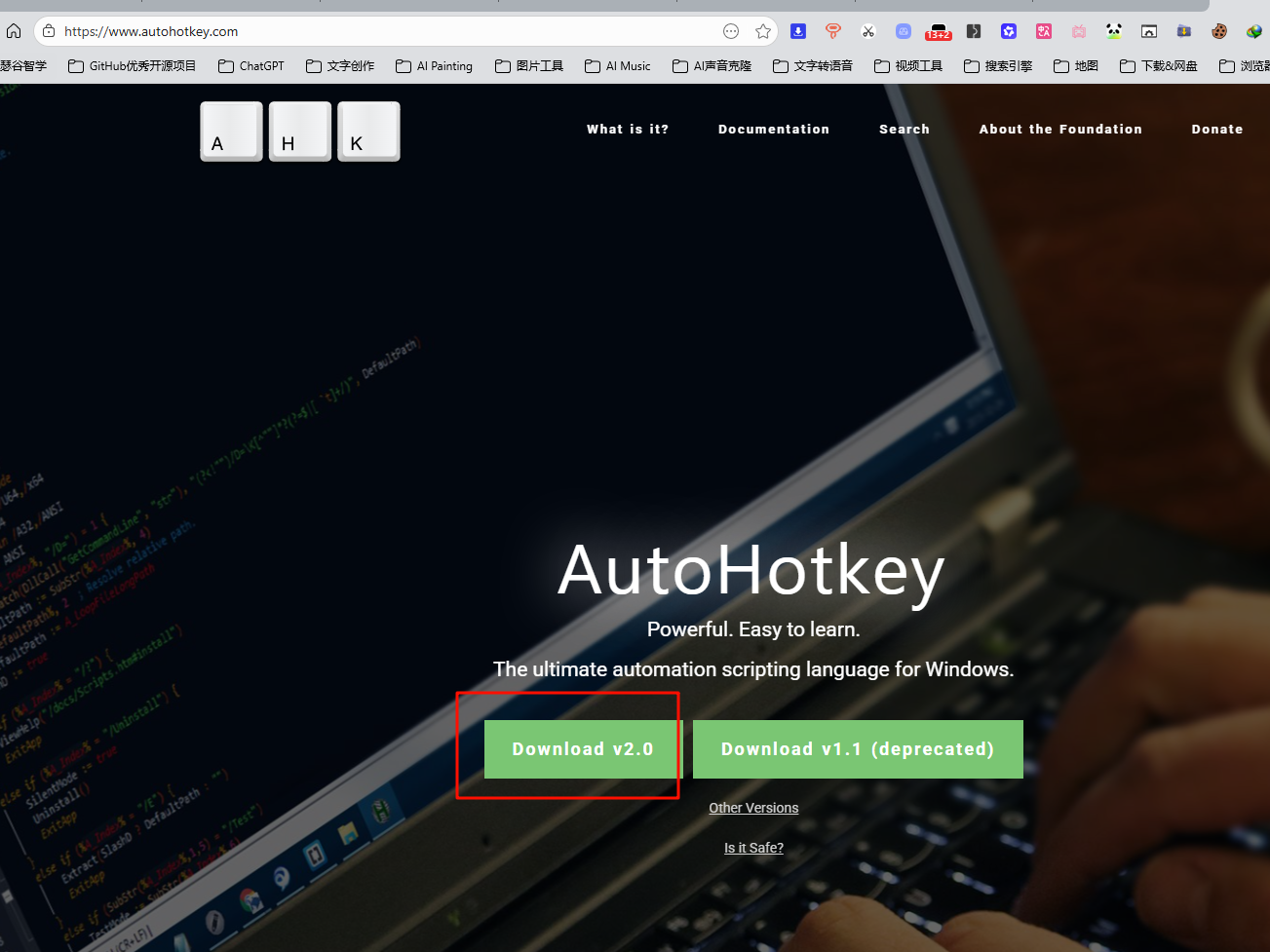 记得首先安装:AHK2.0编译器(用于脚本自动化环境支持),