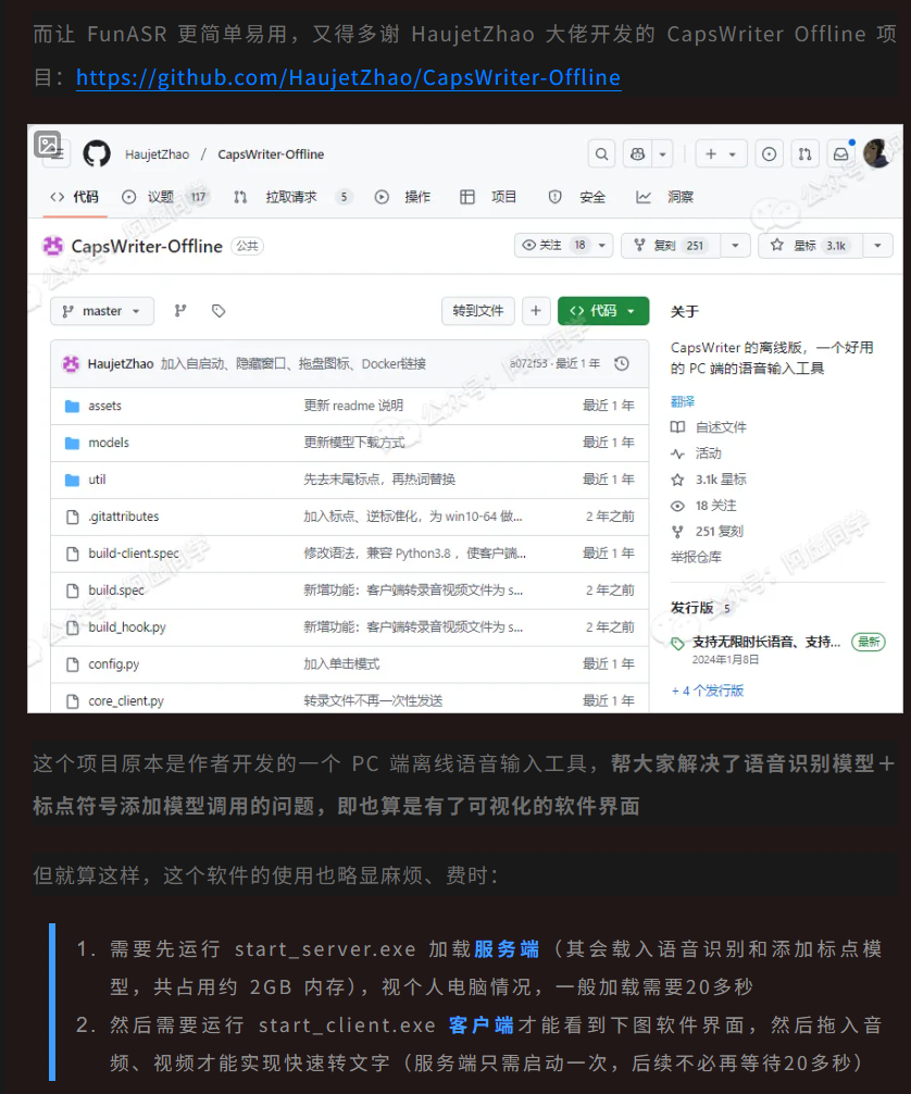 CapsWriter Offline (语音转文字工具):作为转写引擎,将下载好的音频文件转换为文字。